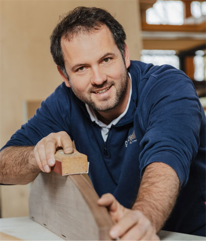 Mein Name ist Gerhard Eckl. Ich bin Schreiner und Metallbaumeister. Die Verbindung der beiden unterschiedlichen und dennoch ähnlich faszinierenden Werkstoffe ist meine Passion. Ich liebe es, Projekte von Beginn an mit zu planen und sie in der Schreinerei umzusetzen. Wenn eine leere Wand, ein kahler Raum oder eine ungenutzte Nische plötzlich funktional und optisch aufgewertet werden, dann erfüllt das auch die Menschen, die sich jeden Tag daran erfreuen. Diese Momente des Erfolgs sind mein Antrieb. Ich entwerfe und fertige ästhetische Einzelstücke – ganz gleich ob modern, traditionell oder funktional. In der Schreinerei in Traitsching (Landkreis Cham) fertige ich in liebevoller Handarbeit detailverliebte Einzelstücke wie Möbel, Küchen, Treppen und Geländer aus heimischen Hölzern, Stahl, Edelstahl und Glas. Für ein perfektes Ergebnis unterstützt mich Einrichtungsprofi Stephanie Karl mit ihren durchdachten Wohnkonzepten und bei mancher Ausfertigung die Schreinerei Kraus. Nachhaltig und regional ist mir bei meiner Arbeit besonders wichtig. Deshalb verarbeite ich nur Hölzer aus heimischen Waldbeständen und beziehe meine Roh- und Werkstoffe von örtlich ansässigen Händlern.